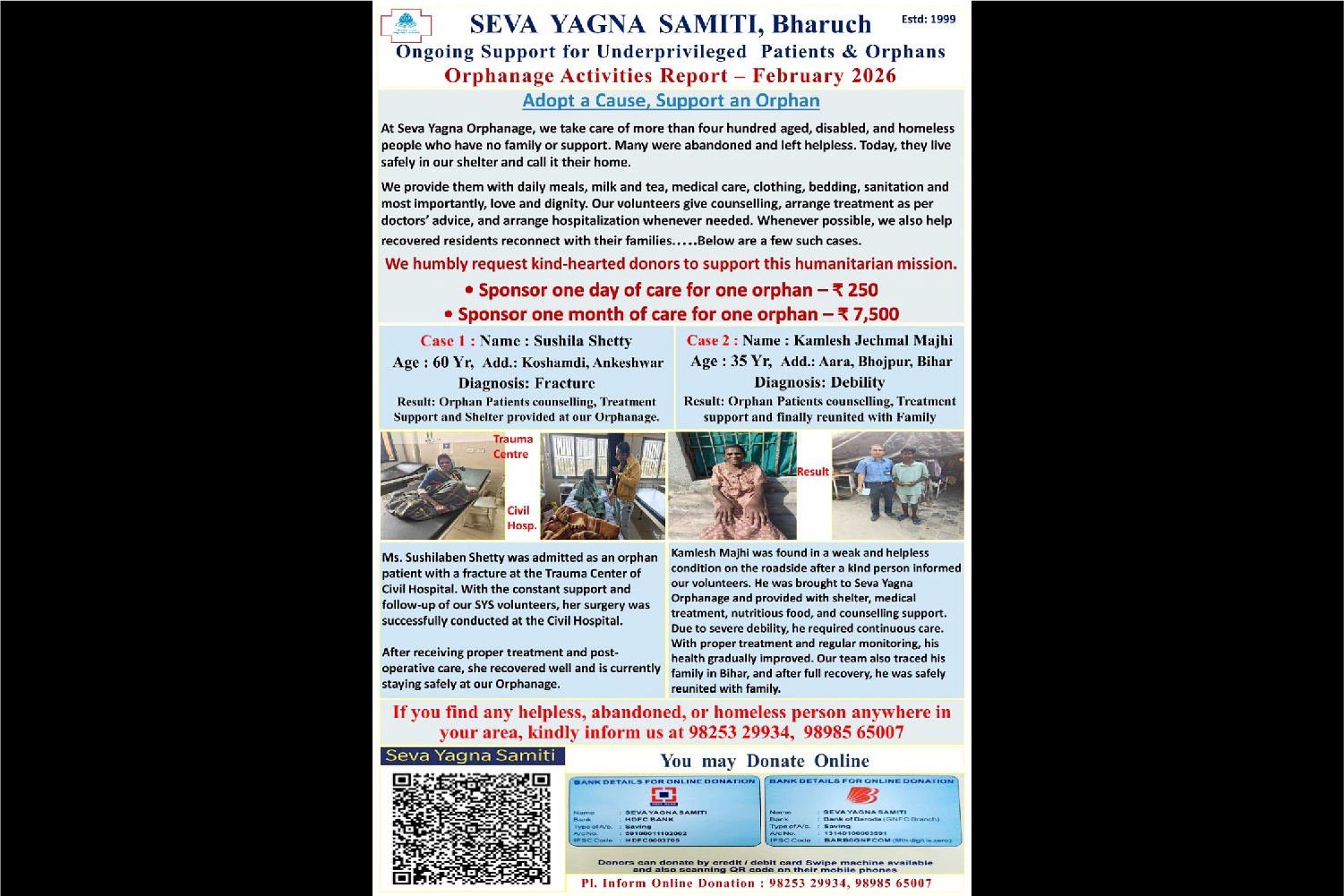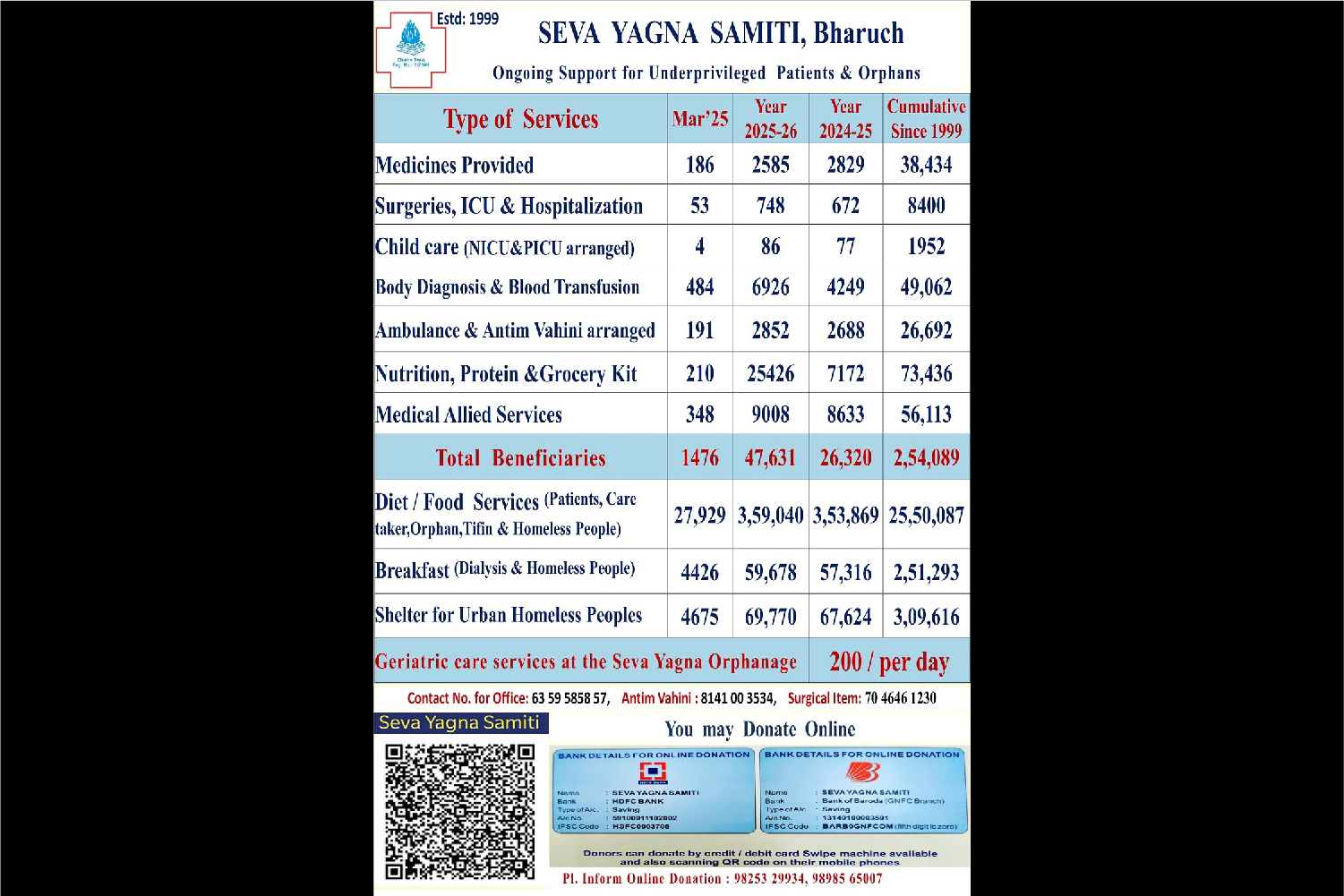 With a view to minimize pain and agony, organization serves for the needy patients for restoration of health since 1999 in Civil Hospital of Bharuch district to be replaced .