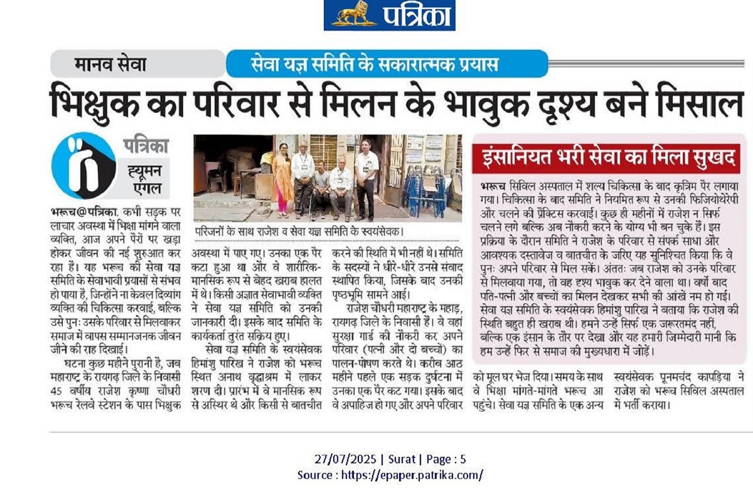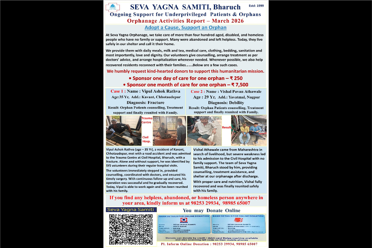 With a view to minimize pain and agony, organization serves for the needy patients for restoration of health since 1999 in Civil Hospital of Bharuch district to be replaced .